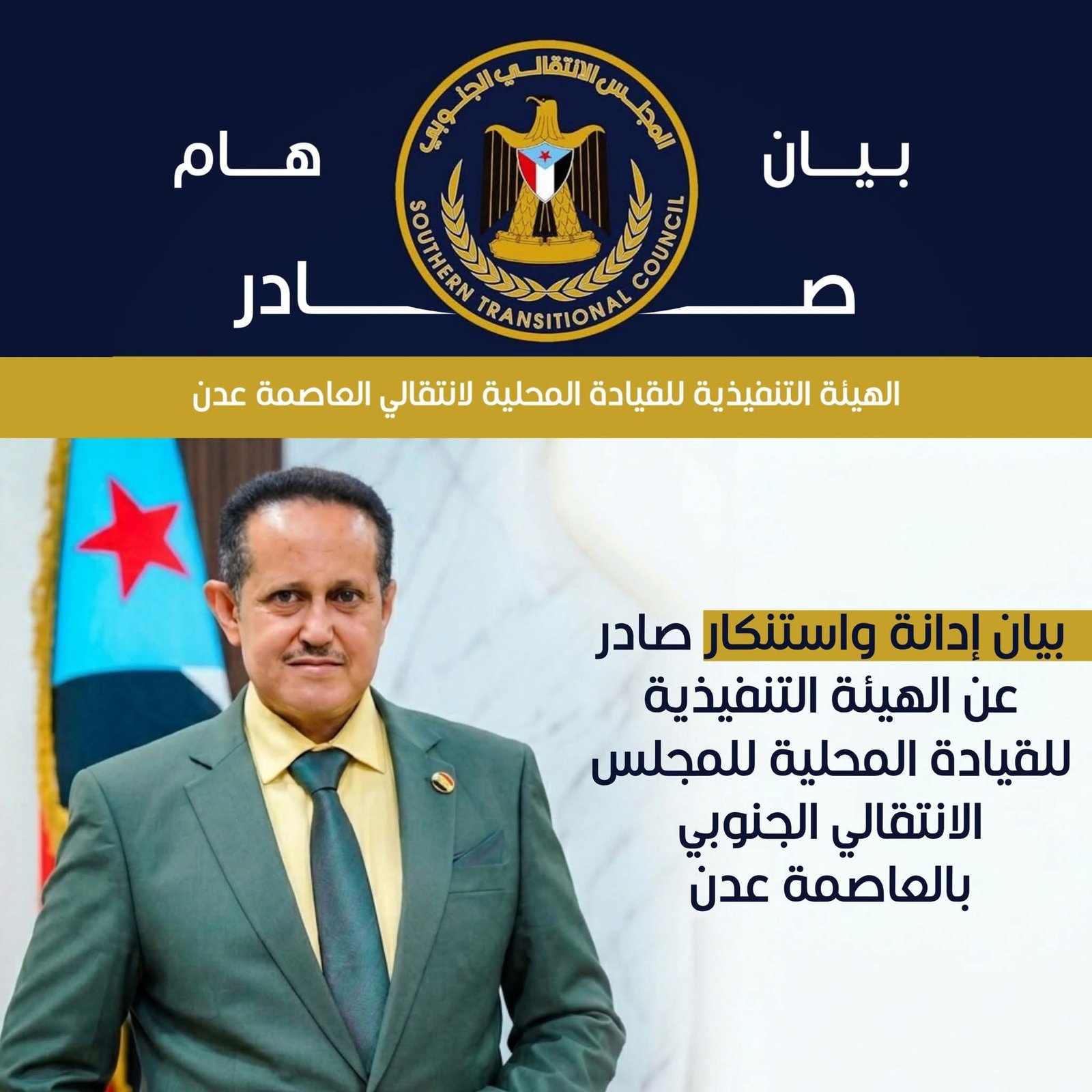 بيان إدانة واستنكار صادر عن الهيئة التنفيذية للقيادة المحلية للمجلس الانتقالي الجنوبي بالعاصمة عدن