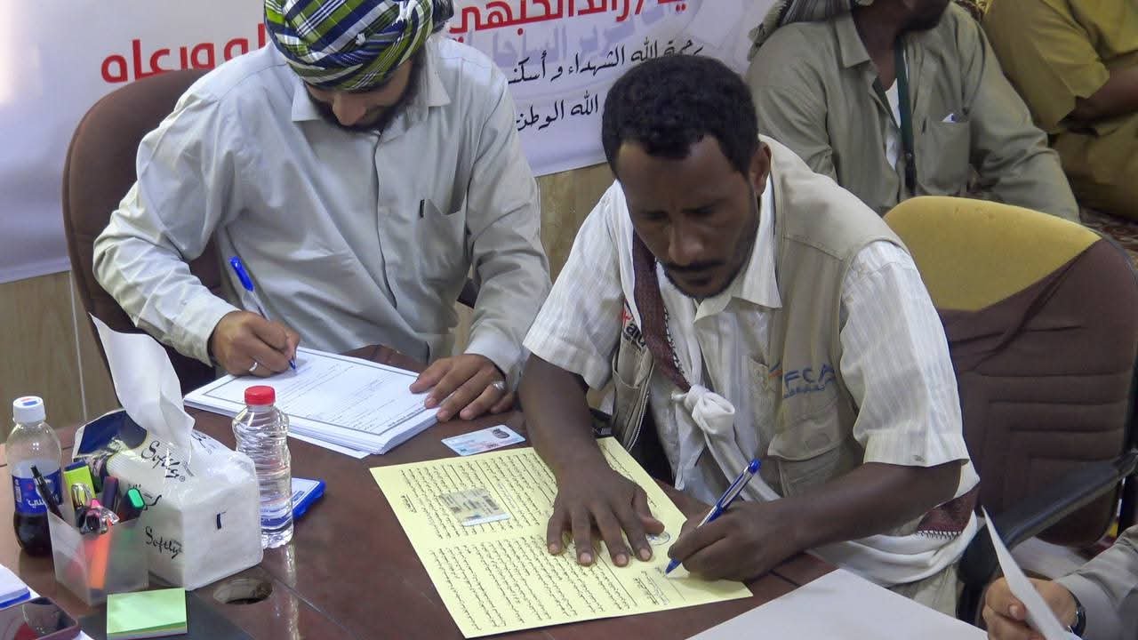 اللواء الاول عمالقة. جنوبية يقوم ببدء توزيع عقود اراضي شهداء منتسبي اللواء .