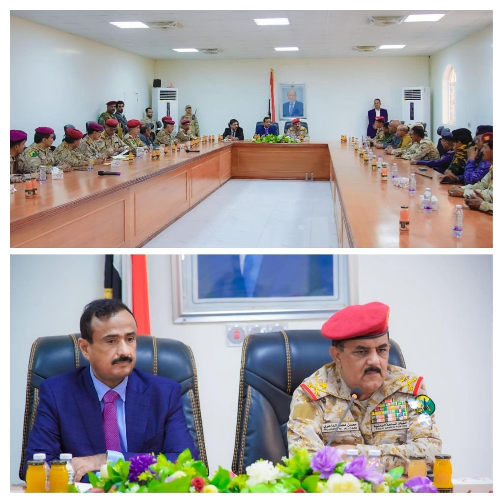 وزير الدفاع ومحافظ شبوة يعقدان اجتماعاً موسعاً بقيادة محور عتق.