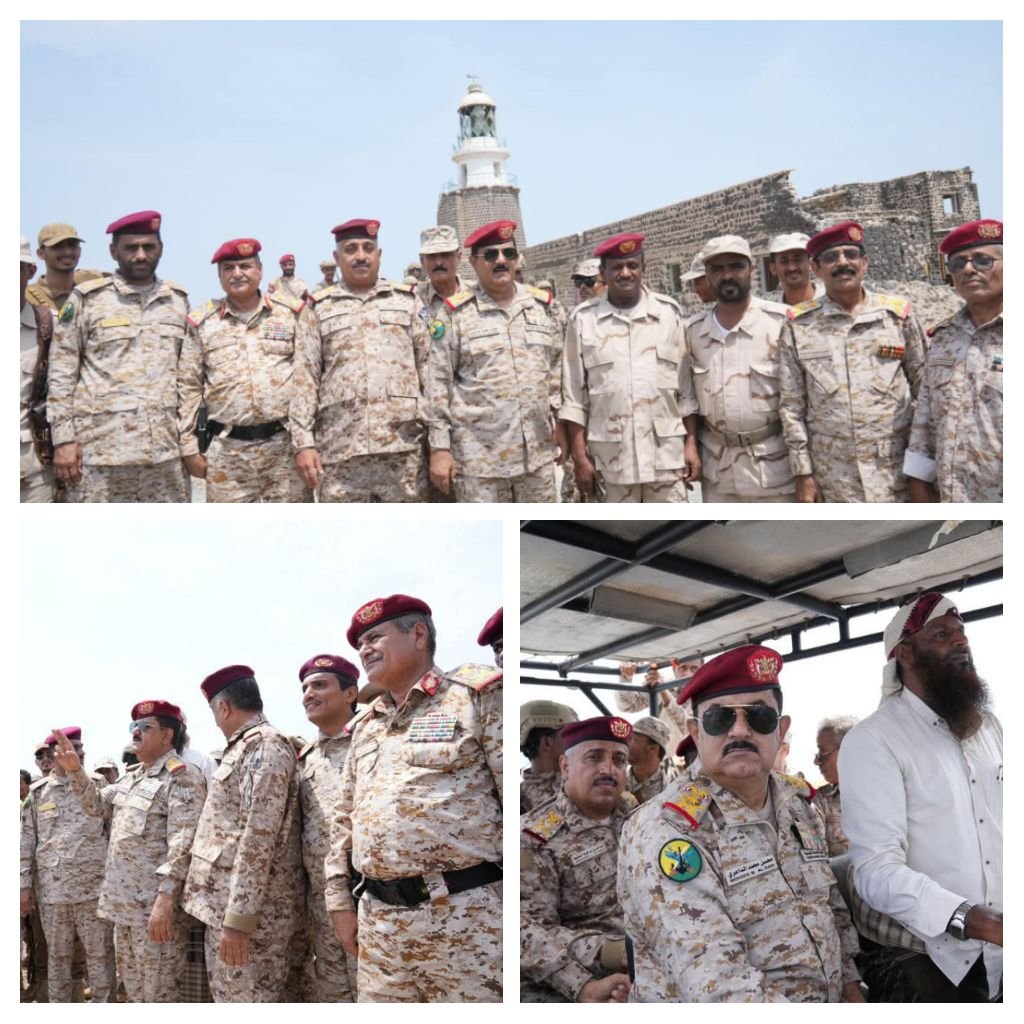 الفريق الركن محسن الداعري يتفقد جزيرة ميون وباب المندب.