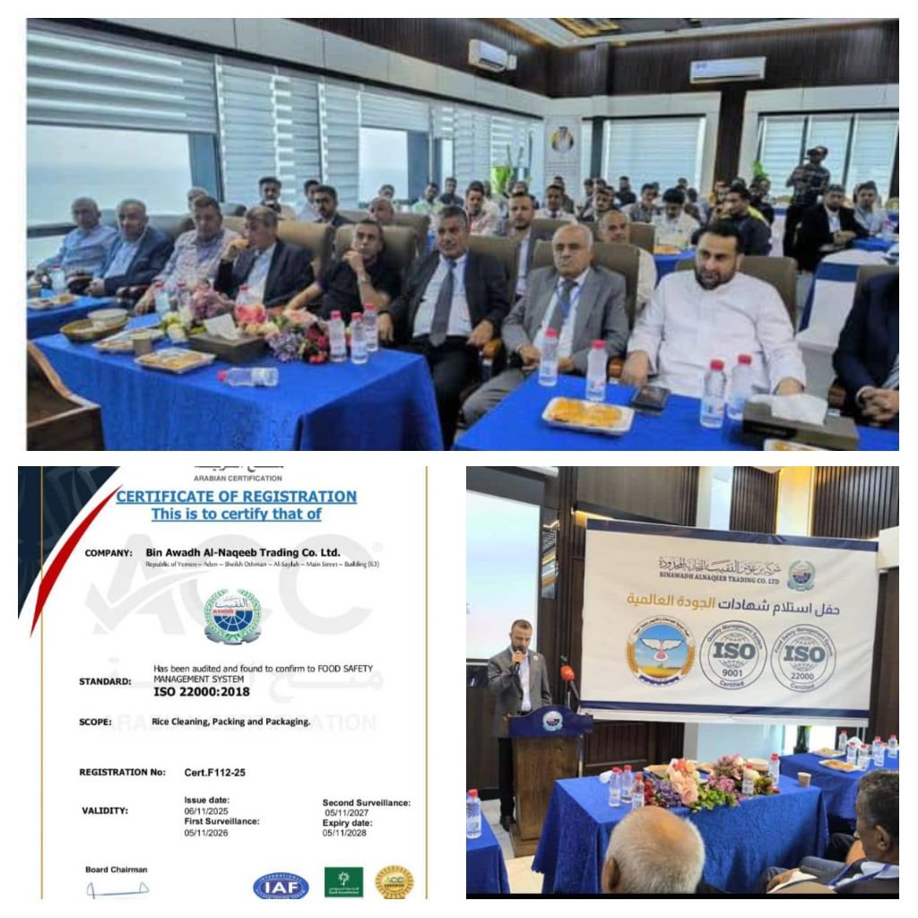 شركة بن عوض النقيب تتسلم شهادات الجودة العالمية ISO في احتفال رسمي بعدن