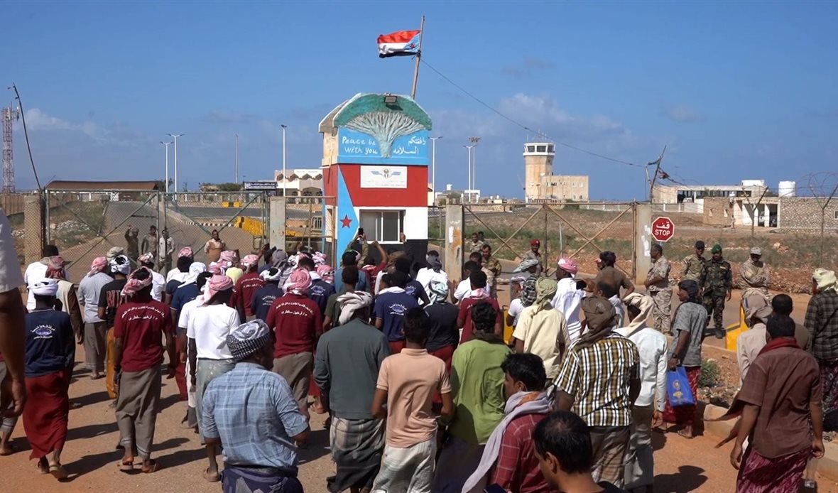 وقفة تضامنية لعمال وموظفي ميناء المكلا تأييدًا لقرارات الرئيس الزُبيدي