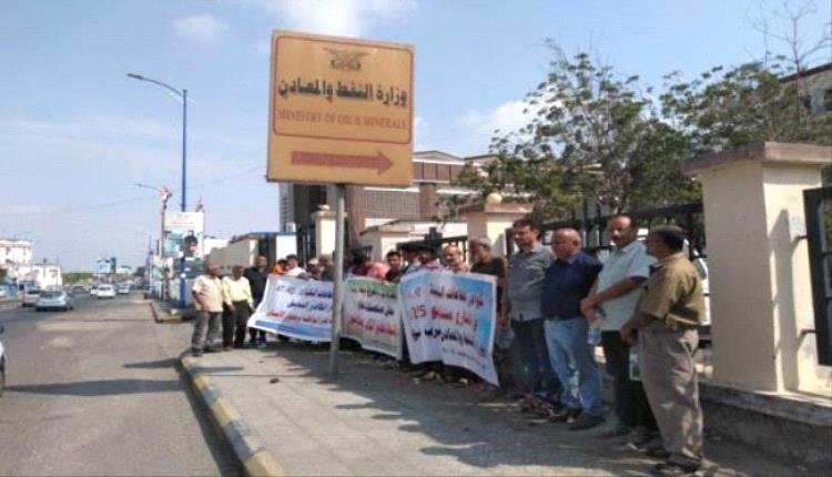 وقفة احتجاجية لعمال وموظفي قطاعات نفطية امام وزارة النفط بعدن