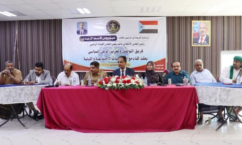 فريق التواصل وتعزيز الوعي السياسي يعقد لقاءً موسعًا بقيادات المجلس والسلطة المحلية والشخصيات الاجتماعية والقبلية في لودر ومكيراس.