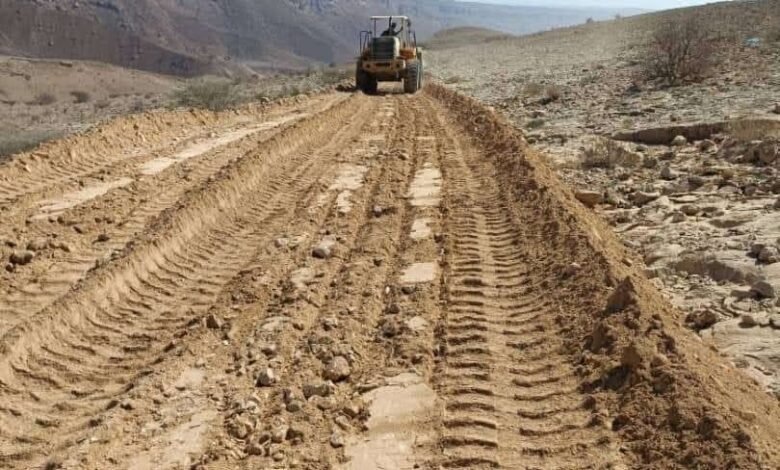 انتقالي يبعث يقوم بعملية صيانة للطريق الرابط بمديرية حجر.