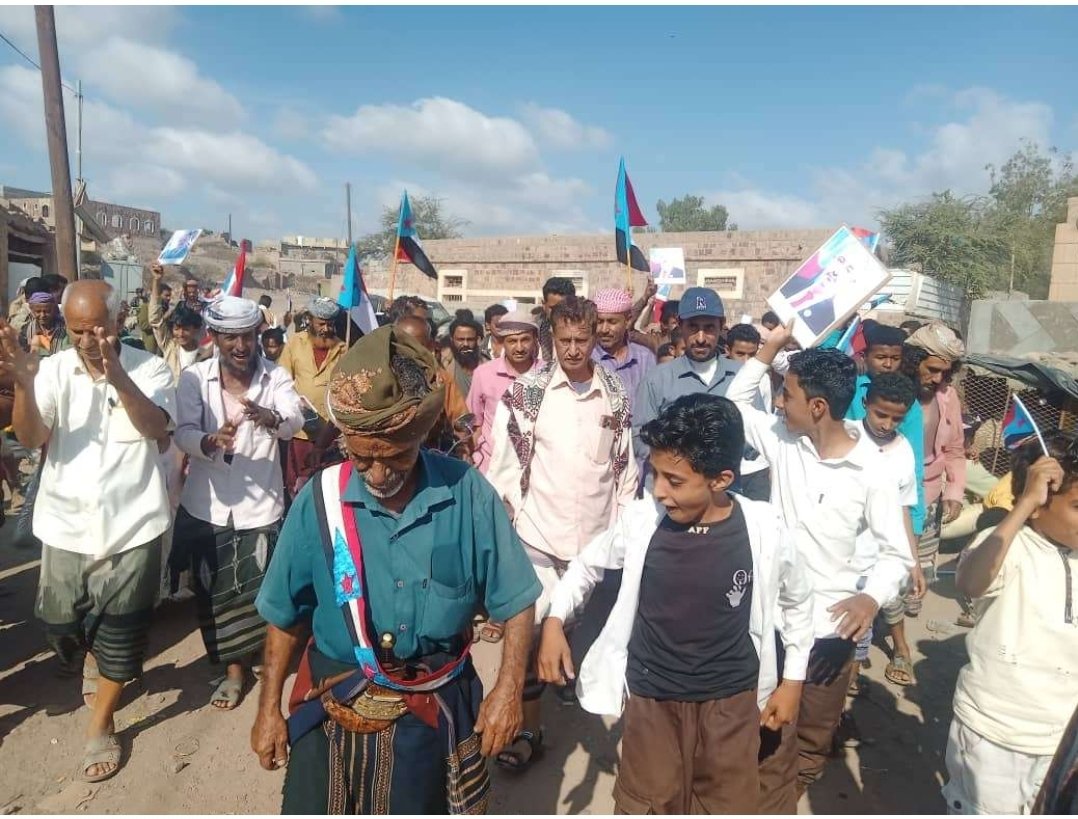 انتقالي حبان ينظم مسيرة جماهيرية احتفالًا بانتصارات القوات الجنوبية في عارين وحضرموت