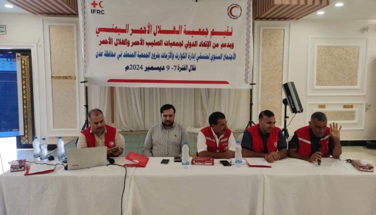 الهلال الأحمر يعقد اجتماع سنوي لمنسقي إدارة الكوارث والأزمات بعدن.