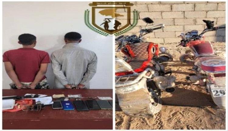 قوات دفاع شبوة تضبط متهمين بجرائم سرقة بمدخل عتق.