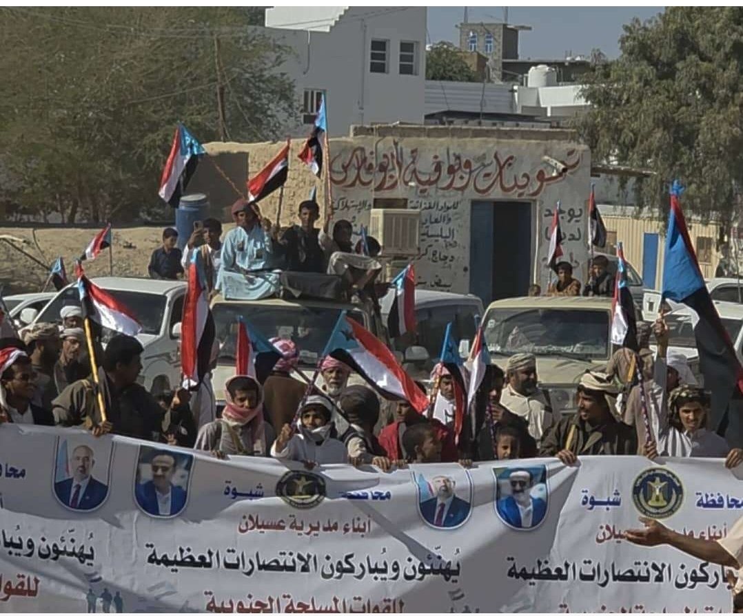 انتقالي عسيلان ينظم مسيرة جماهيرية احتفالاً بتحرير عارين ووادي حضرموت
