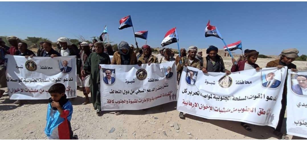 انتقالي بيحان ينظم مسيرة جماهيرية احتفالًا بانتصارات القوات الجنوبية في عارين وحضرموت