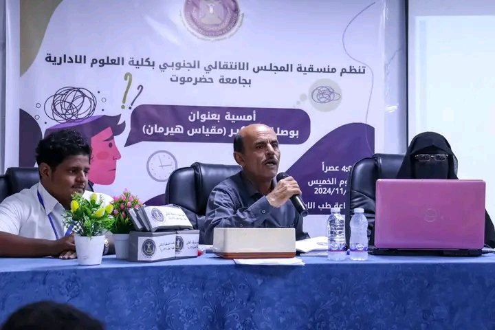 منسقية الانتقالي في كلية العلوم الإدارية بجامعة حضرموت تنظم أمسية بعنوان "بوصلة التفكير.