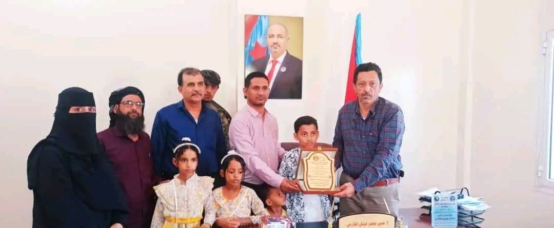 رئيس تنفيذية انتقالي أبين يُكرم الطالب يسلم السعيدي الحائز على المركز الثاني بمسابقة عباقرة العرب للحساب الذهني.