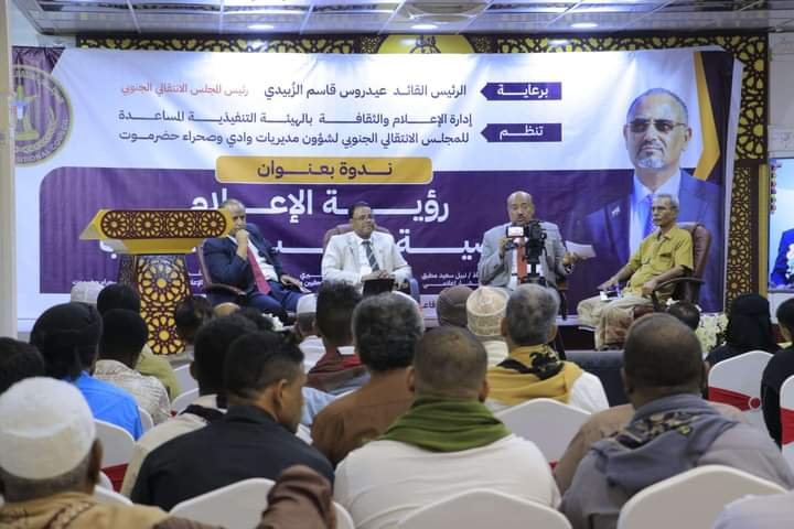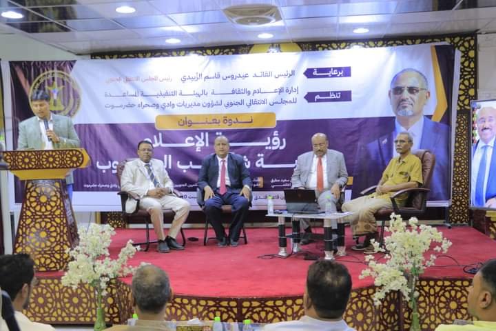 انتقالي وادي وصحراء حضرموت ينظم ندوة حول رؤية الإعلام الجنوبي لقضية شعب الجنوب.