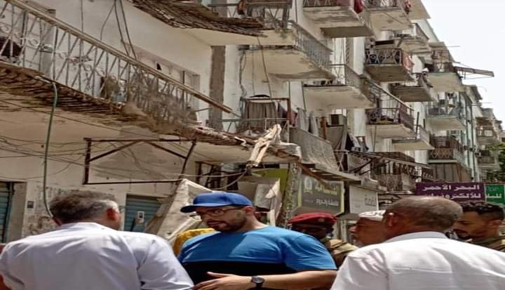 بناء على توجيهات المحافظ لملس.. الوكيل السقاف يتفقد مكان انهيار شرفات إحدى عمارات الشارع الرئيسي بالمعلا.