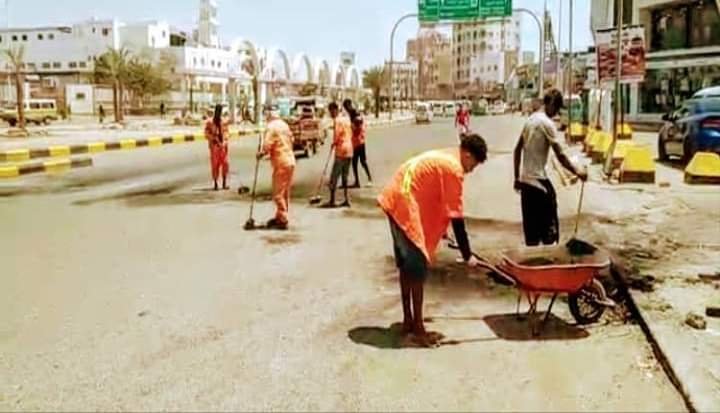 حملة من قبل صندوق النظافة في العاصمة عدن لرفع مخلفات الاحتجاجات الشعبية.