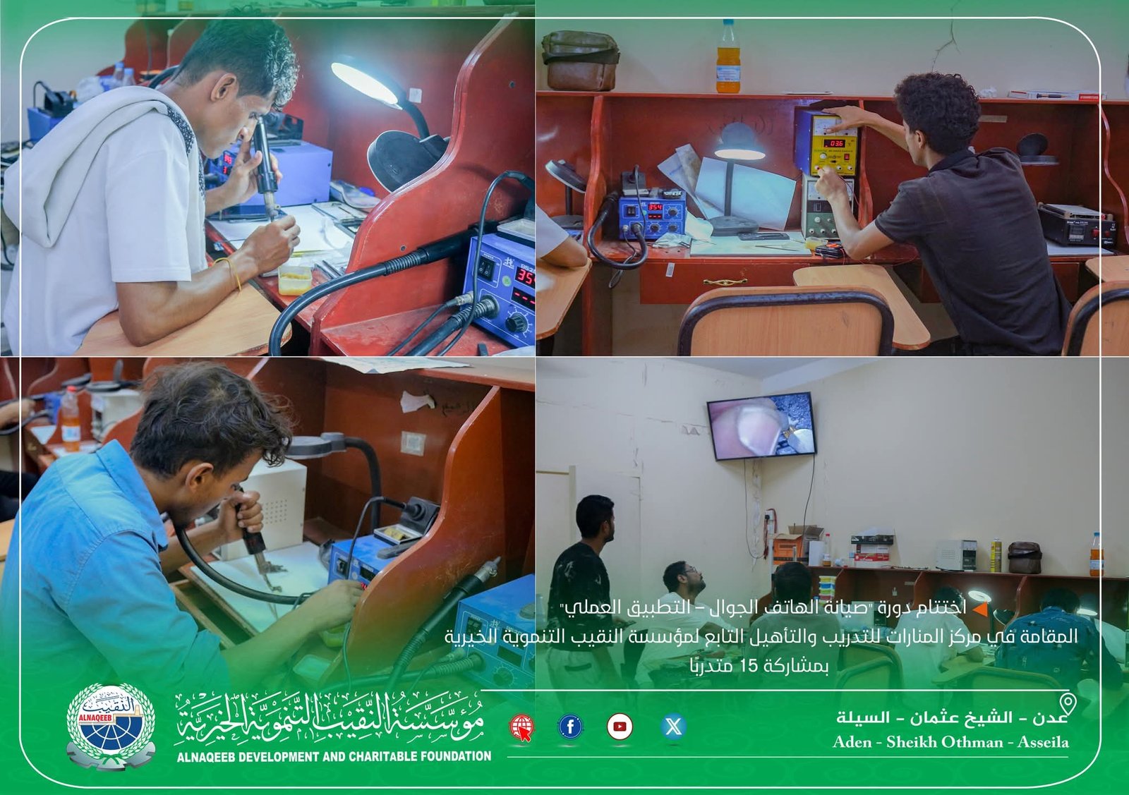 اختتام دورة "صيانة الهاتف الجوال – التطبيق العملي" المقامة في مركز المنارات للتدريب والتأهيل التابع لمؤسسة النقيب التنموية الخيرية بمشاركة 15 متدربًا.