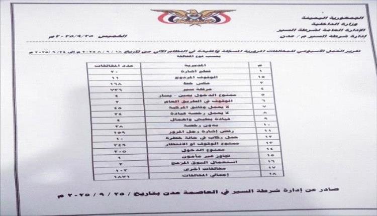 شرطة السير عدن : زيادة في المخالفات وانخفاض في الحوادث/إحصائيات