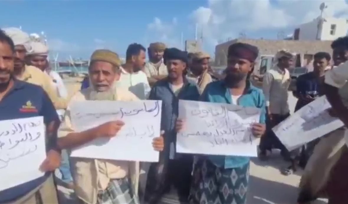 وقفة احتجاجية لمالكي الشاحنات بسقطرى رفضاً لاحتكار عمليات الشحن والتفريغ بالميناء