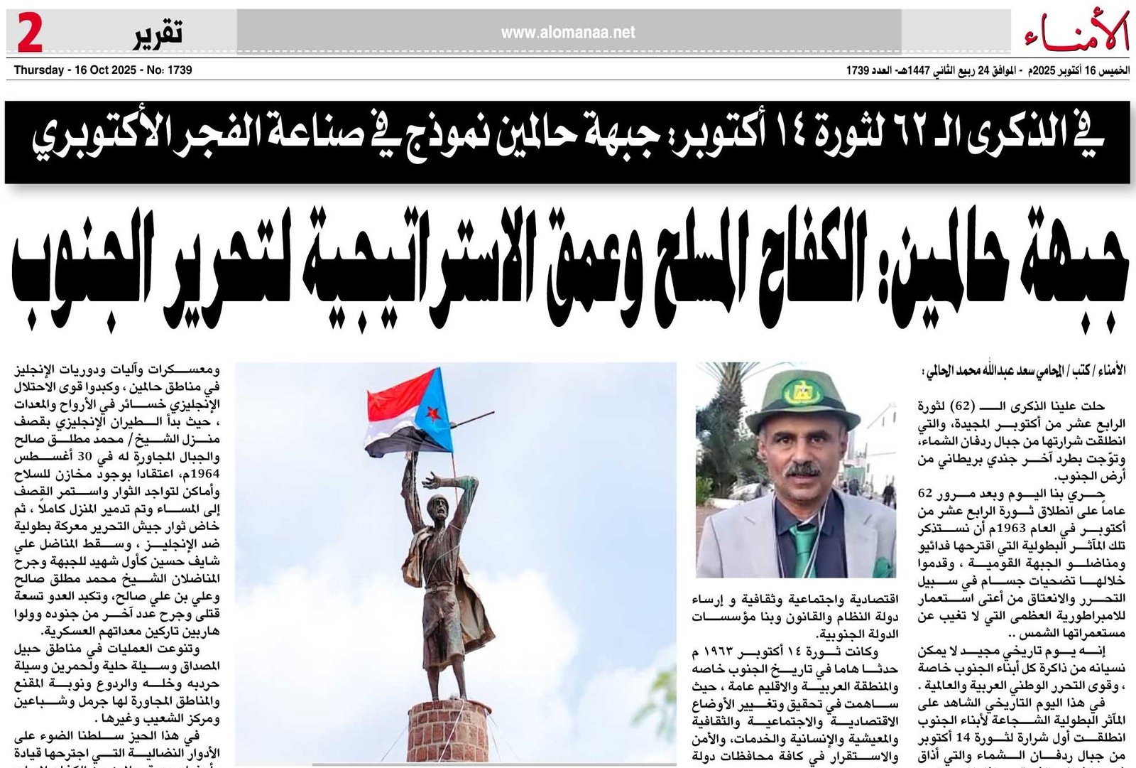 المحامي سعد الحالمي يكتب في الذكرى الـ 62 لثورة 14 أكتوبر: جبهة حالمين نموذج في صناعة الفجر الأكتوبري ..سرد للأسماء والمآثر البطولية