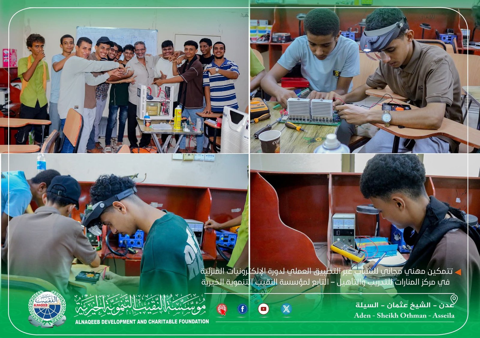 تمكين مهني مجاني للشباب: التطبيق العملي لدورة الإلكترونيات المنزلية المقامة في مركز المنارات للتدريب والتأهيل التابع لمؤسسة النقيب التنموية الخيرية.