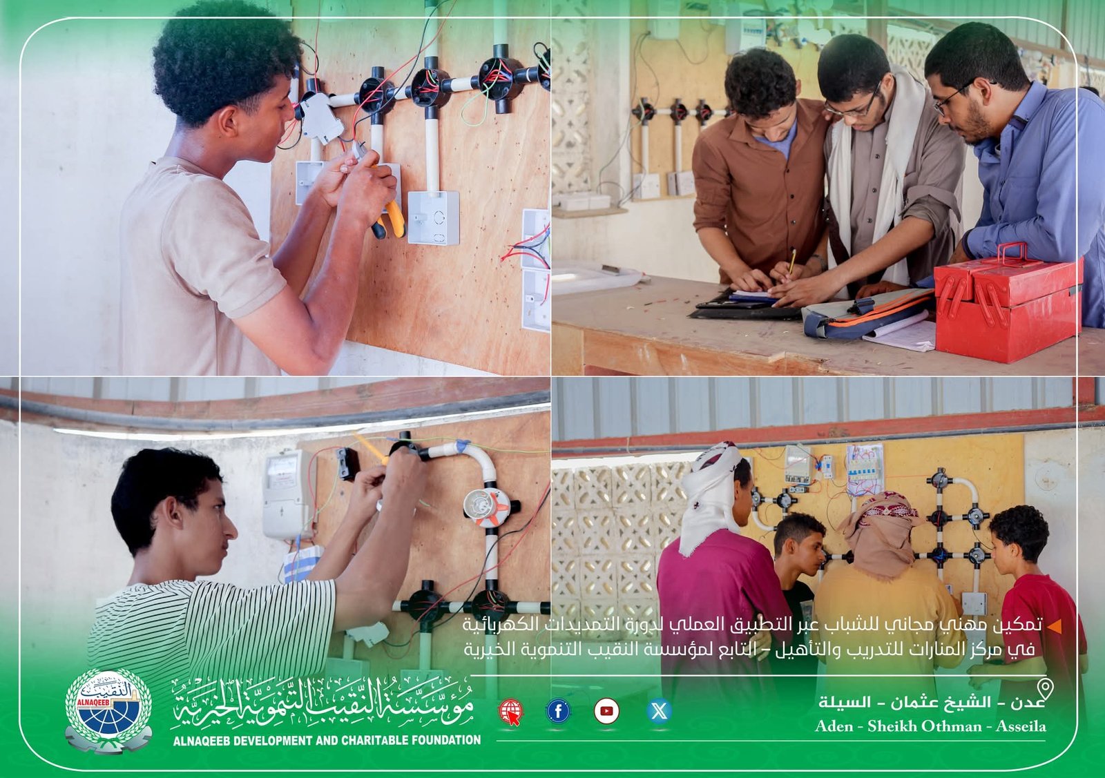 مؤسسة النقيب التنموية الخيرية تمكّن الشباب مهنيًا عبر دورة عملية في التمديدات الكهربائية المقامة في مركز المنارات للتدريب والتأهيل.