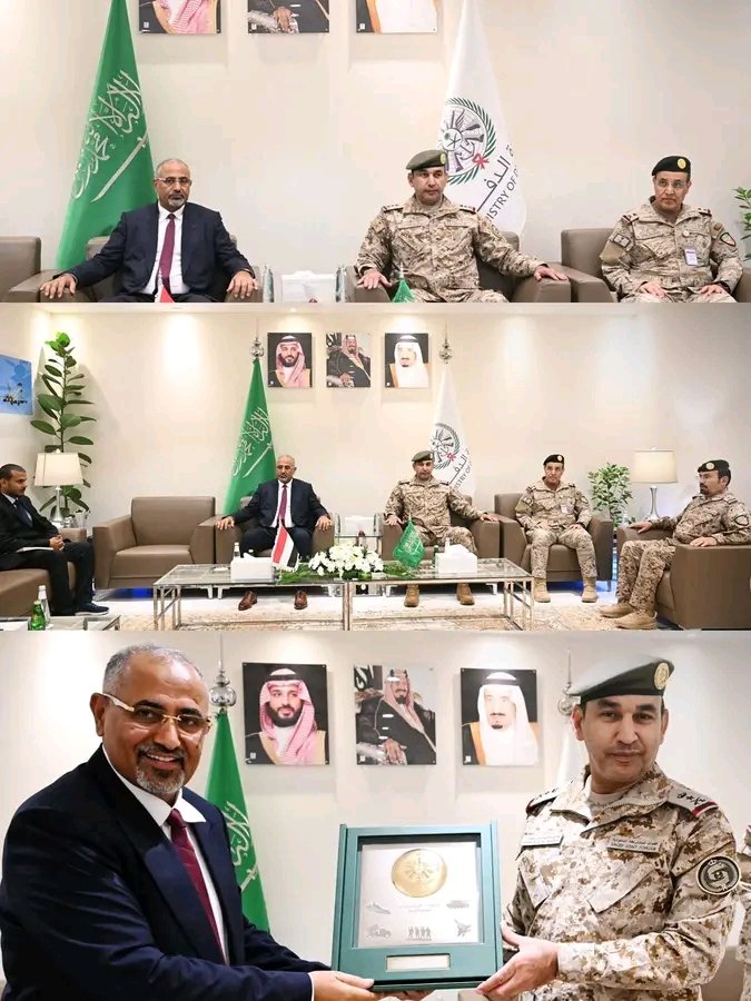الرئيس الزُبيدي يزور مقر قيادة القوات المشتركة بالعاصمة السعودية الرياض.