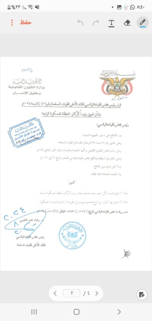 قرار رئاسي بتعيين العميد الركن نصر سعيد شائف أركان المنطقة العسكرية الرابعة.