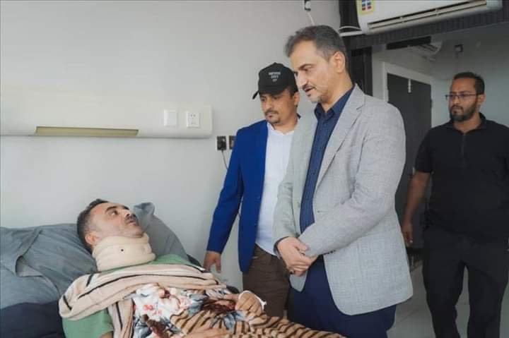 لملس يطمئن على صحة مدير عام مديرية الحبيلين الشيخ فضل القطيبي.