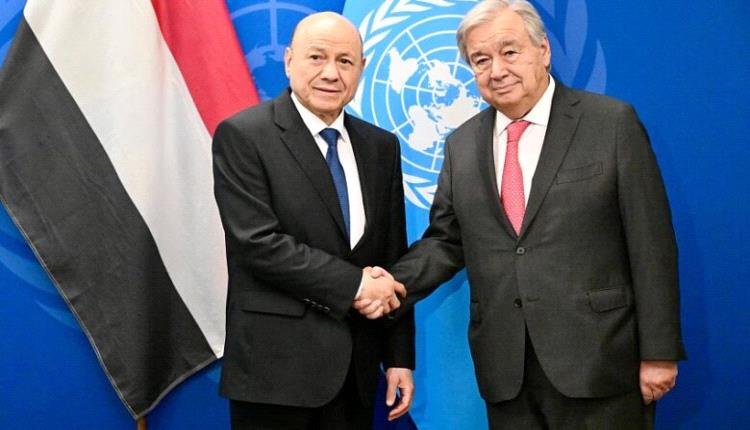العليمي يلتقي الأمين العام للأمم المتحدة