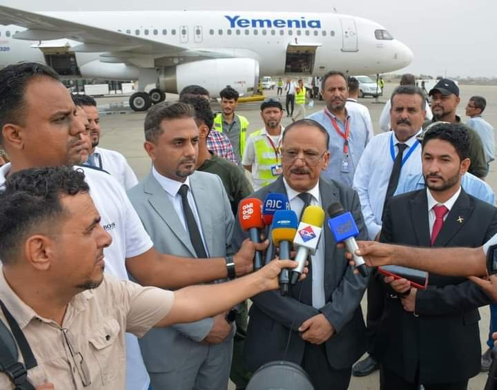 وزير النقل يدشن إستئناف خط رحلة عدن - دبي عقب توقف دام عشر سنوات.
