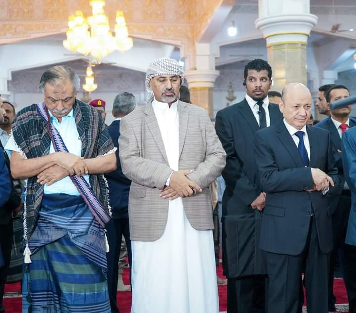 الرئيس القائد عيدروس الزُبيدي يؤدي صلاة عيد الأضحى في جامع الرئاسة.
