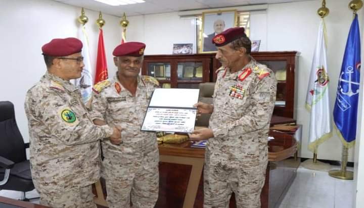 نائب رئيس هيئة الأركان العامة يكرم العميد الركن خالد الزامكي بشهادة شكر وتقدير.