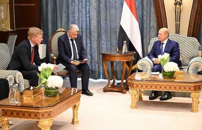 قبل المفاوضات المرتقبة مع الحوثيين.. الرئيس العليمي يلتقي المبعوث الأممي ويؤكد له شرط الشرعية لأي حل للأزمة.