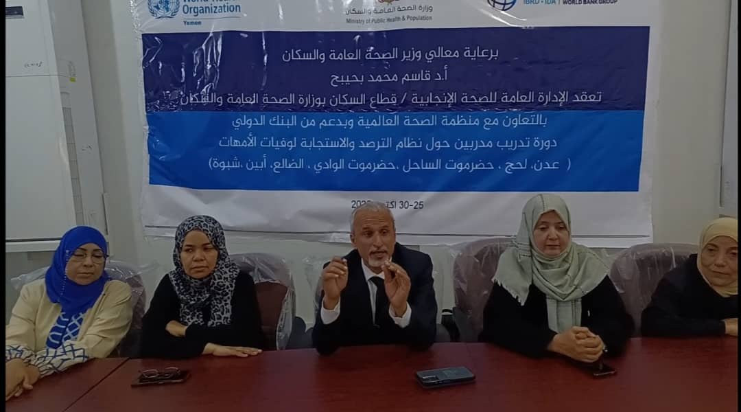 الوكيل الشبحي يدشن بالعاصمة عدن “دورة تدريب المدربين” حول نظام الترصد والاستجابة لوفيات الأمهات