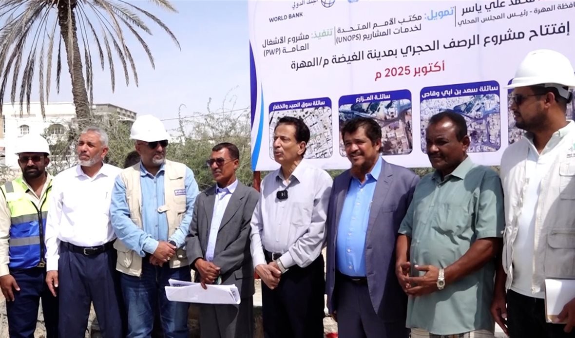 محافظ المهرة يفتتح مشروع الرصف الحجري لتصريف مياه الأمطار