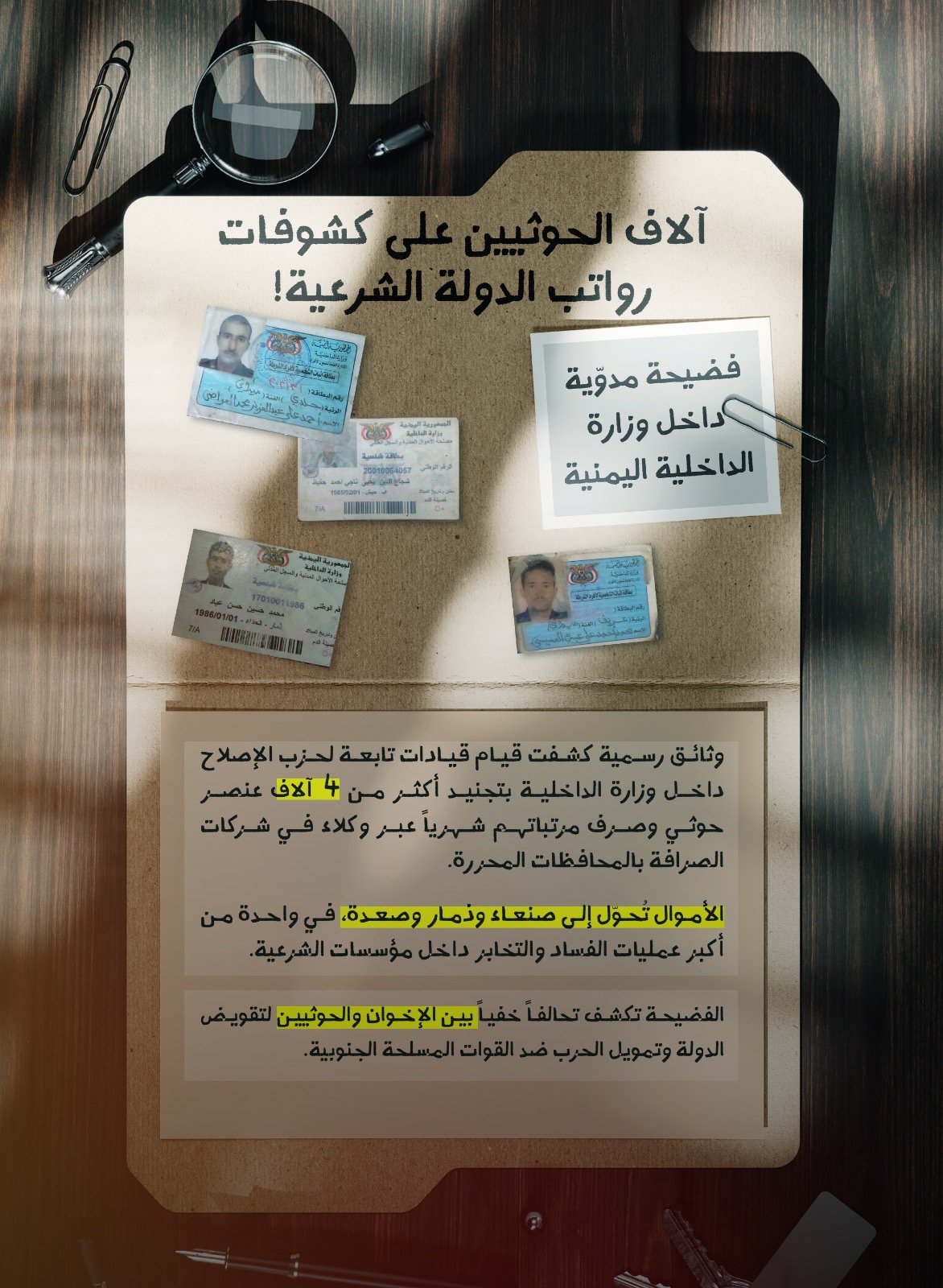 فضيحة مدوّية للإخوان .. آلاف الحوثيين يتقاضون رواتبهم شهرياً من أموال الدولة الشرعية!