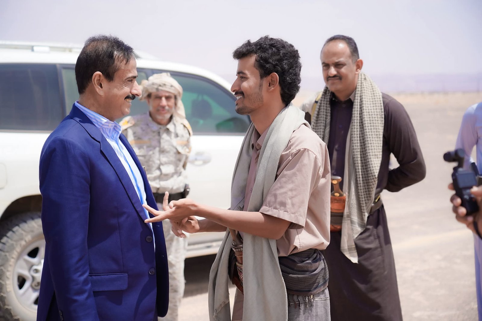 المحافظ بن الوزير خلال جولة ميدانية يوجه باعتماد مشروع مدرسة وخزان مياه لمنطقة لَجَب بمديرية عتق