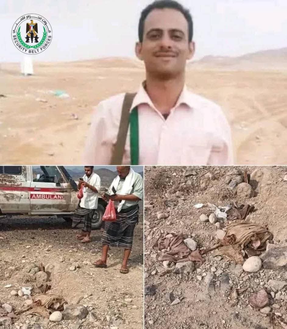 قوات الحزام الأمني قطاع المسيمير تعثر على جثة أحد الجنود مقتولا بقرية مريب