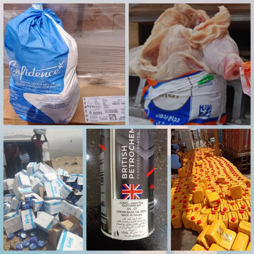 هيئة المواصفات والمقاييس ترفض كميات كبيرة من الدجاج المجمد في ميناء المنطقة الحرة بالعاصمة عدن
