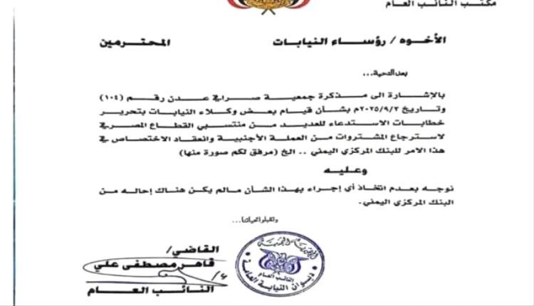 النائب العام يوجه بوقف استدعاءات الصرافين خارج الأطر الرسمية