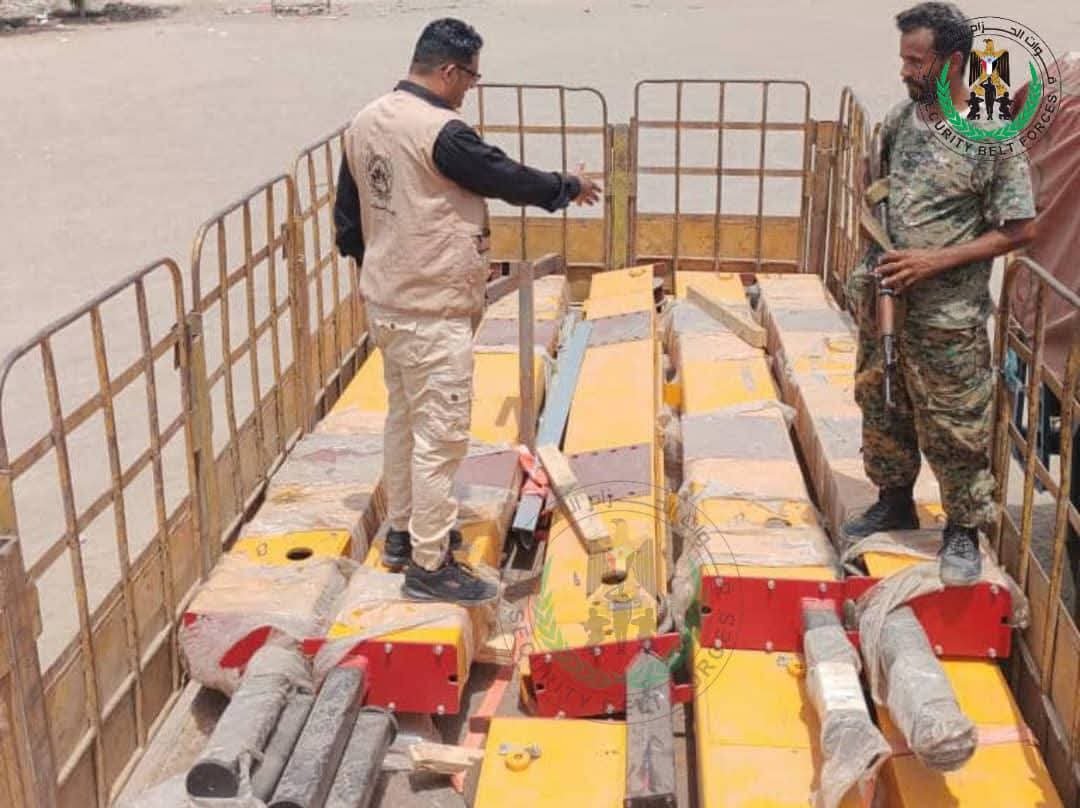 لحج.. قوات الحزام الأمني تضبط رافعات مخصصة لإنزال حاويات السفن كانت في طريقها إلى الحديدة