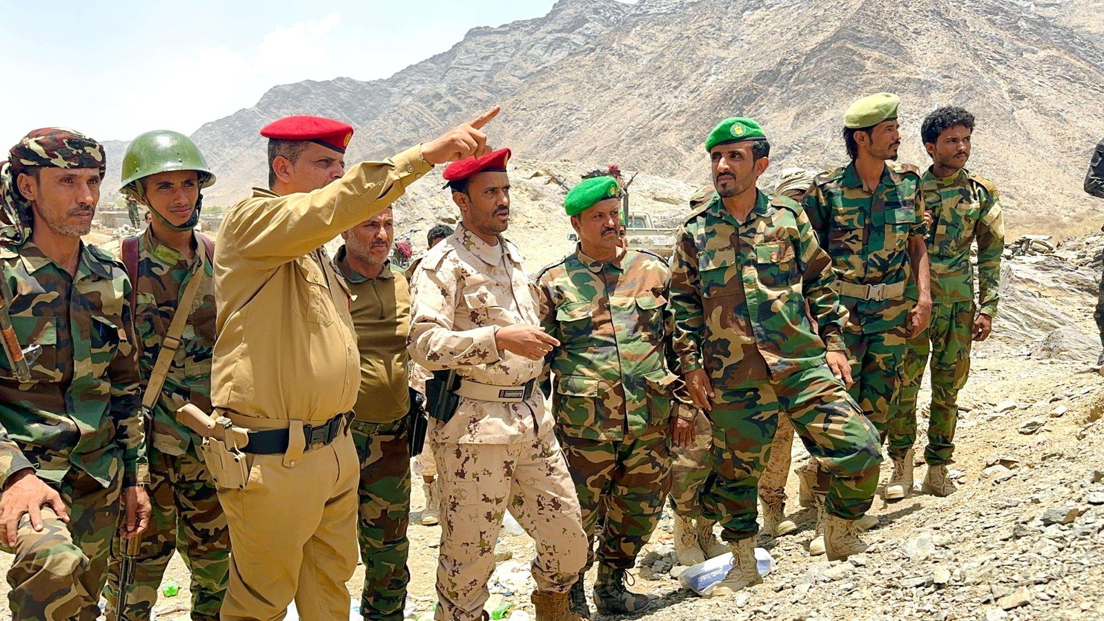 قائد ألوية المشاة البرية بشبوة والمقدم النقيب يتفقدان جبهة بيحان الحدودية