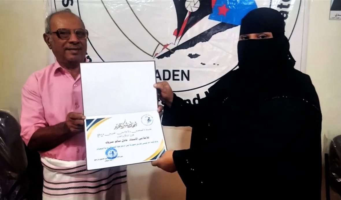 نقابة الصحفيين والإعلاميين الجنوبيين بلحج تكرم أسرة الفقيد عادل سالم مبروك