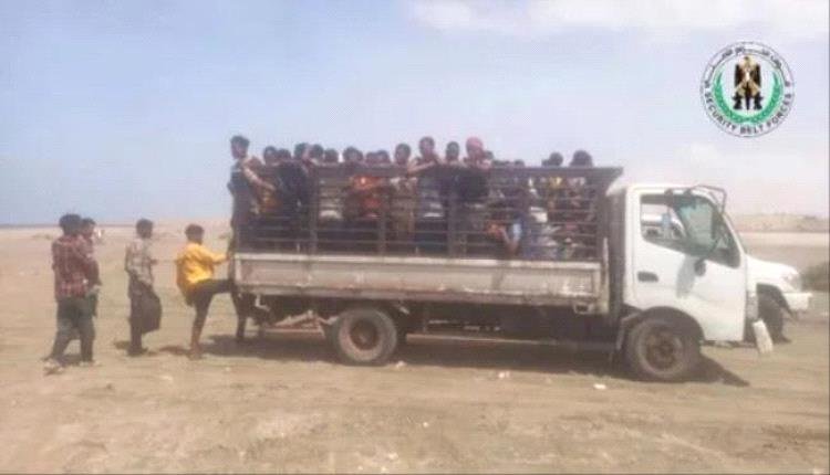 الحزام الأمني في الصبيحة يضبط 119 مهاجرا أفريقيا بعمق البحر