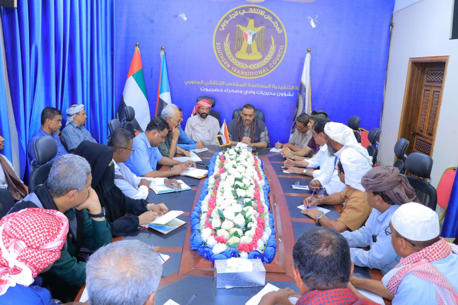 تنفيذية انتقالي وادي وصحراء حضرموت تبحث الأوضاع المعيشية والخدمية في المديريات
