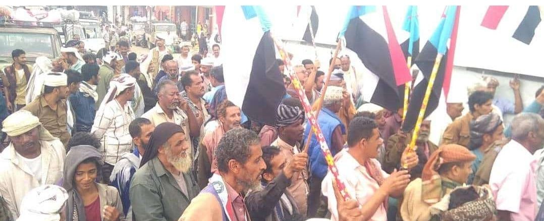 حشود جماهيرية في الحوطة تؤيد البيان السياسي والإعلان الدستوري وتندد بالغارات السعودية