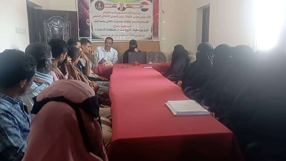 منسقية الانتقالي بجامعة أبين تقيم ندوة علمية حول النزوح ومخاطر تغيير الهوية السكانية