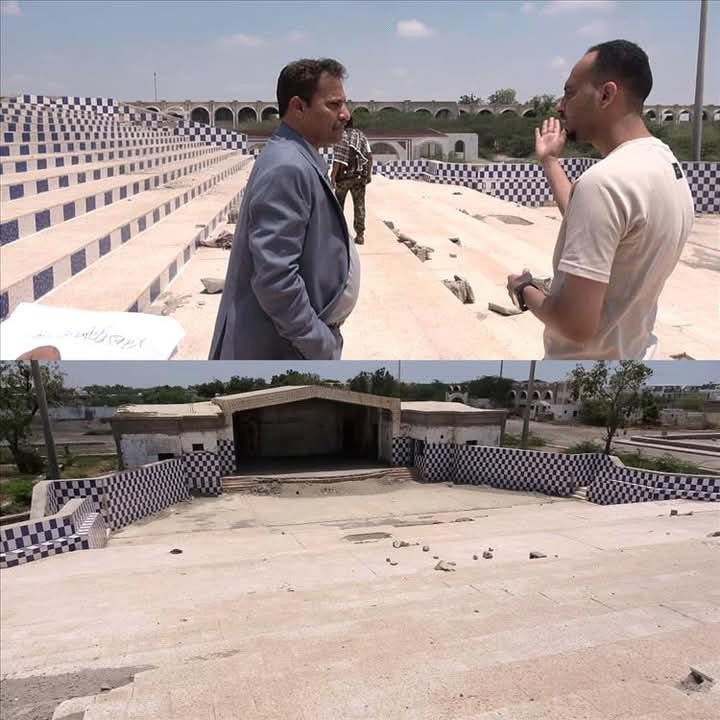 محافظ أبين يتفقد ساحة الشهداء ويوجه بإعادة تأهيل المسرح.