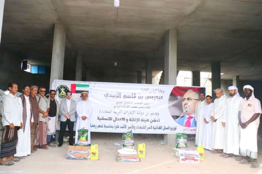انتقالي غيل بن يمين يدشن توزيع السلال الغذائية على أسر الشهداء والأشد فقرًا بالمديرية