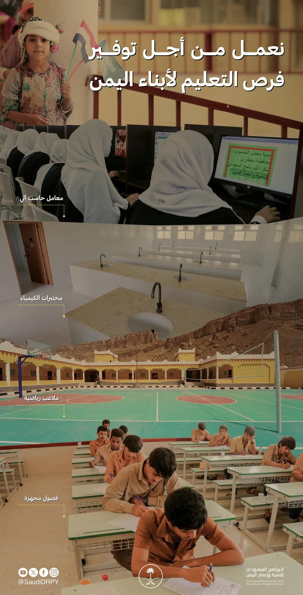 البرنامج السعودي لتنمية وإعمار اليمن يقدّم أكثر من 35 مدرسة نموذجية متكاملة في عدد من المحافظات.